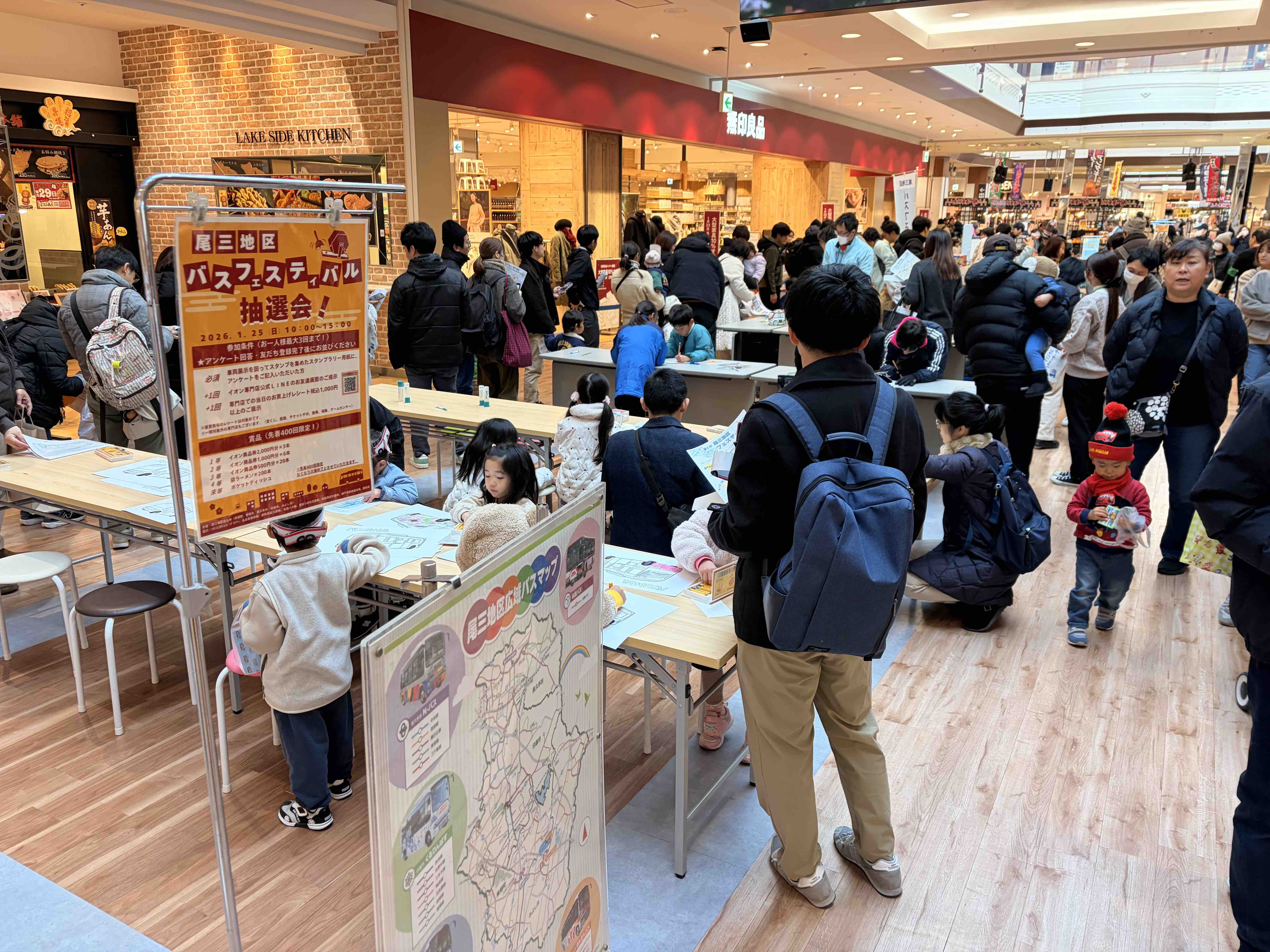 イオンの中では、バスの塗り絵コーナーや